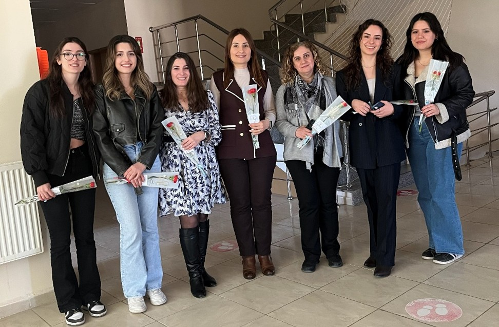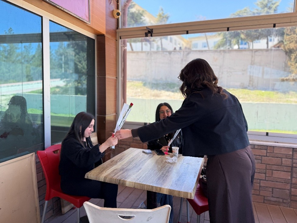 Etkinlik kapsamında, önceden belirlenen noktalarda kadın akademisyen, personel ve öğrencilere çiçek takdim edilerek, bu anlamlı günleri kutlanmıştır. Kadınların bilimde, sanatta, akademide, iş dünyasında ve yaşamın her alanındaki önemli katkılarını vurgulamayı amaçlayan etkinlik, katılımcılar tarafından büyük ilgi ve memnuniyetle karşılanmıştır.